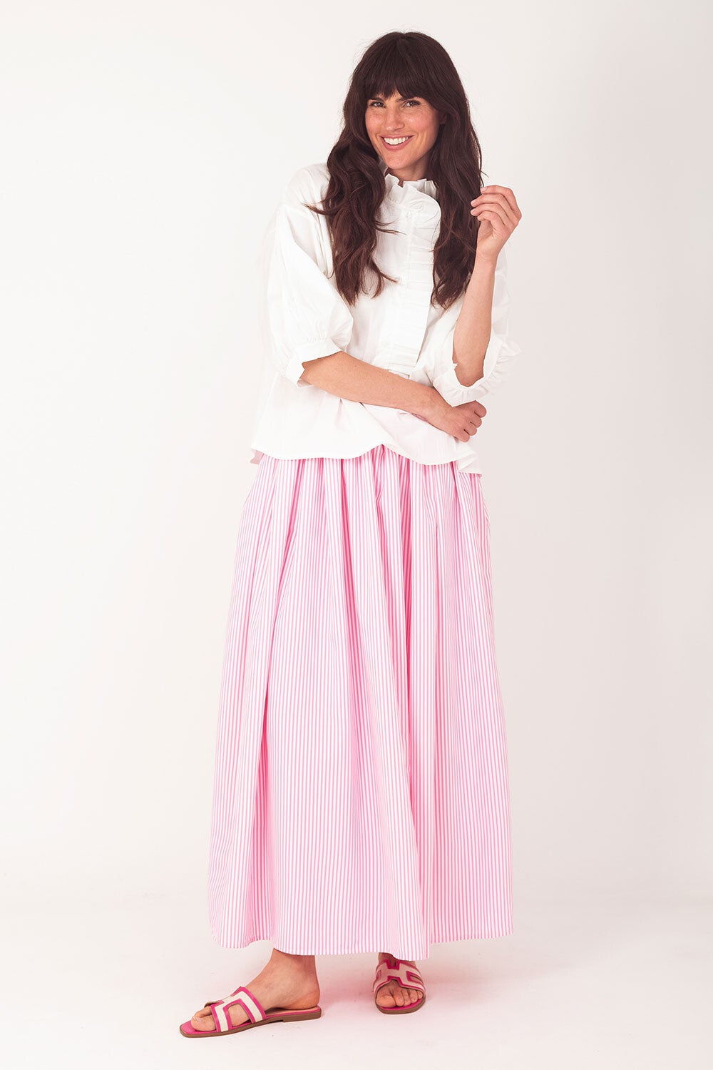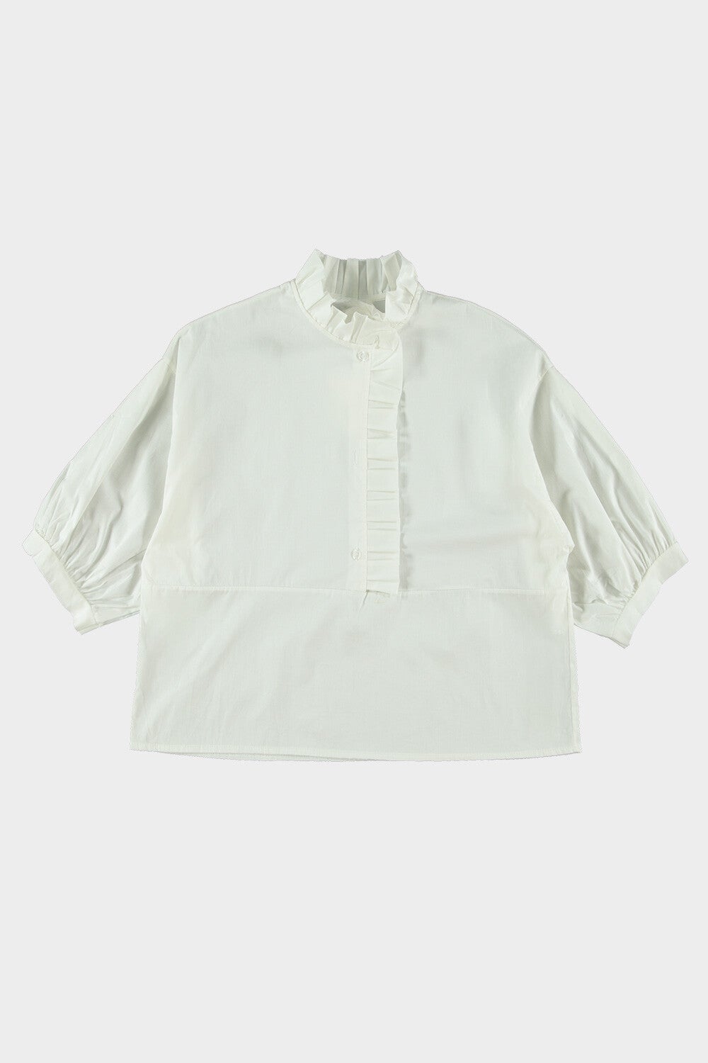 Prachtige blouse met driekwart mouw met mooie roesels.