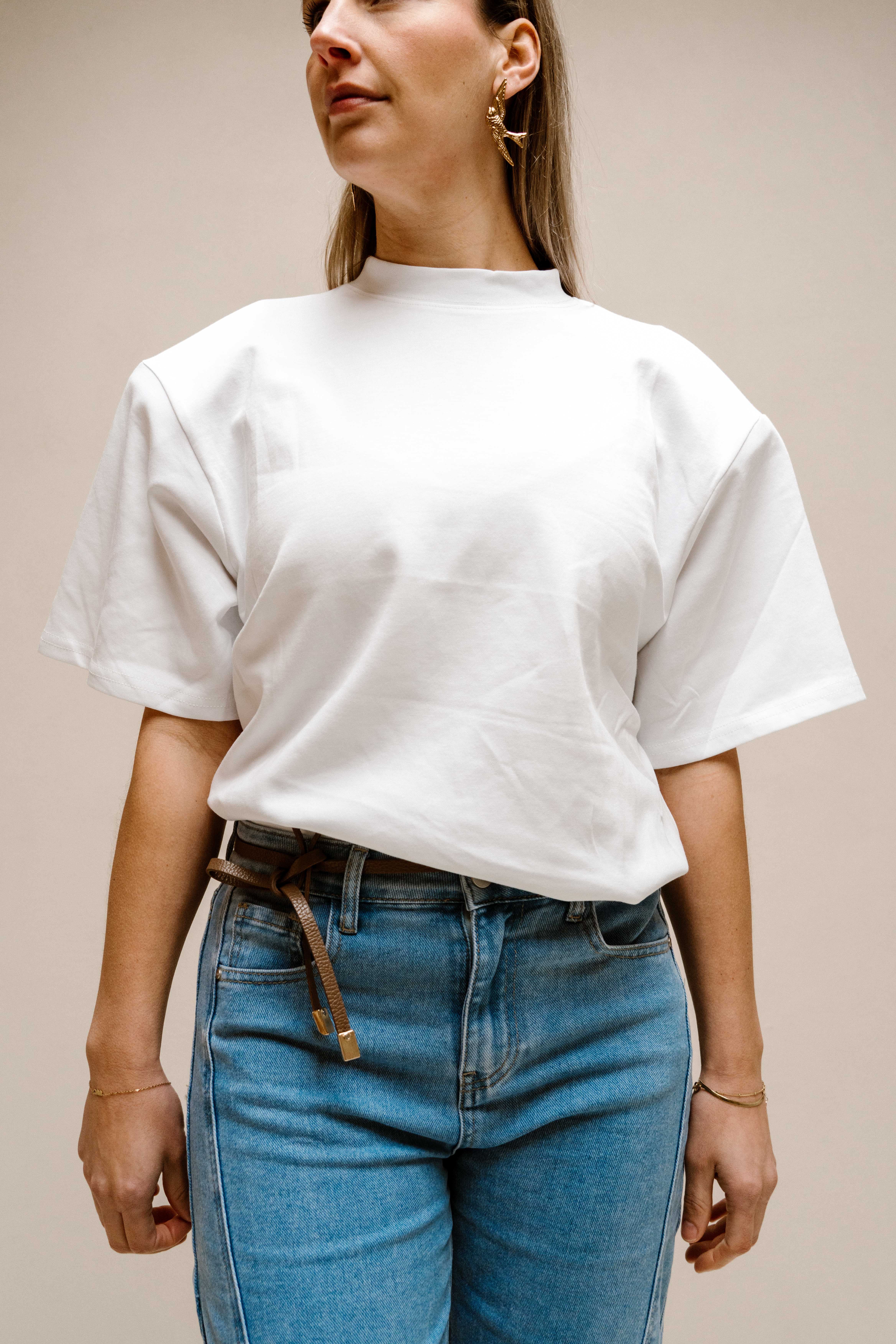 Prachtige beige blazer met een knoop op de rug voor een speciaal effect, ook beschikbaar in de kleur taupe.