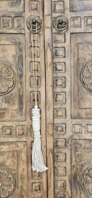 Hanger Callé is een verfijnde visbeen hanger met natuurlijke kaurischelpjes in zachte, neutrale tinten. De combinatie van het ambachtelijke visbeenpatroon en de subtiele glans van de schelpjes geeft het ontwerp een pure, warme uitstraling. De gelaagde strengen zorgen voor een speels en organisch effect, terwijl het geheel rust en balans uitstraalt. Dankzij de natuurlijke materialen en zachte kleuren laat Callé zich moeiteloos combineren met linnen, hout, rotan en andere aardse elementen. Perfect als decoratief accent aan een wand, kast of haak en ideaal om een subtiele bohemian sfeer toe te voegen aan een rustig, natuurlijk interieur. Een tijdloos detail dat warmte en karakter brengt in elke ruimte.