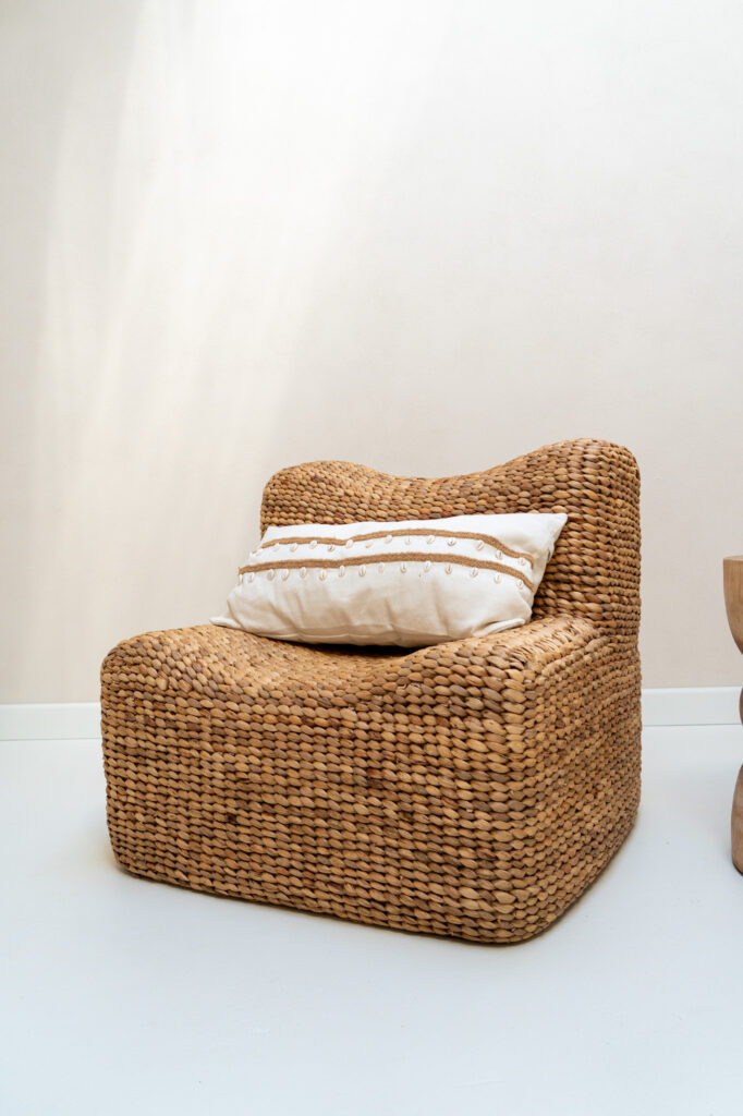 De brede zitting en open vorm maken Stoel Solis perfect om heerlijk in te ontspannen. Het gebruik van waterhyacint geeft het ontwerp een subtiele tropische sfeer die moeiteloos past binnen een bohemian, minimalistisch of warm Scandinavisch interieur.