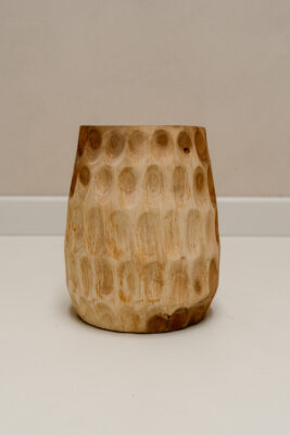 Een indrukwekkende houten vaas met verfijnde carving details. Vaas Bohdi is een echte eyecatcher en brengt warmte, karakter en ambacht samen in één uniek statement piece.